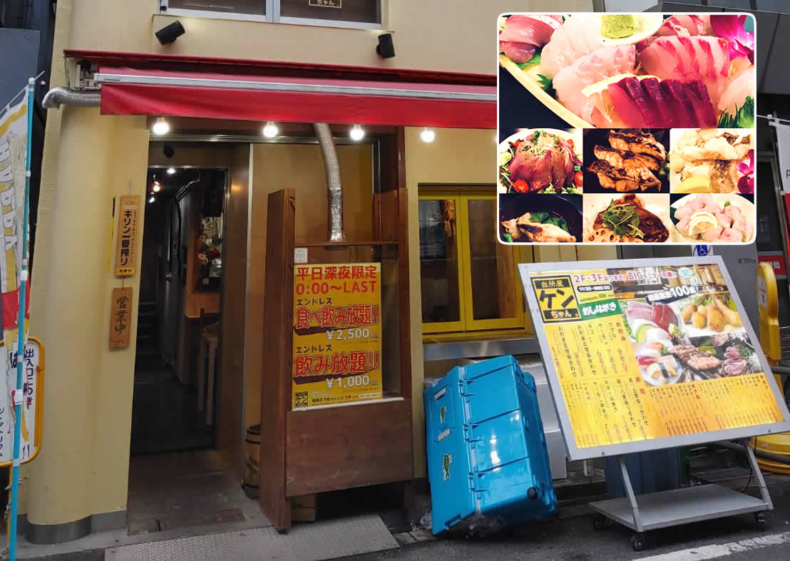 居酒屋の「台所・ケンちゃん」に釣った魚を預けて小休憩。